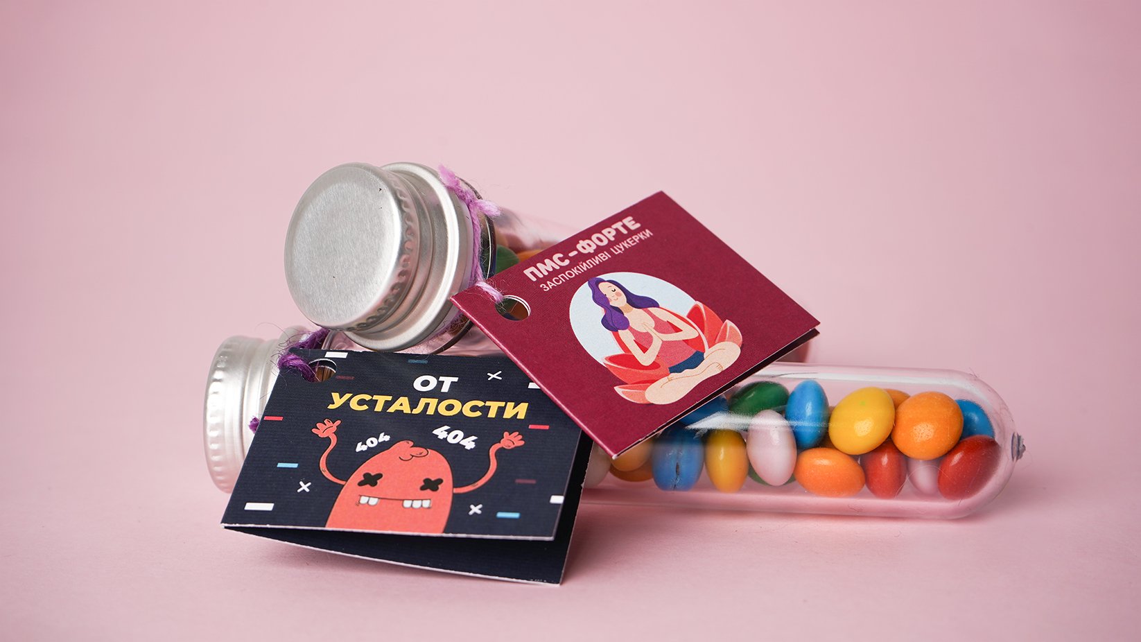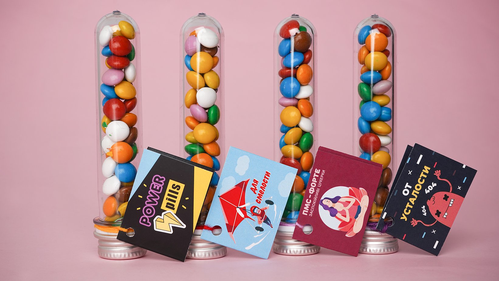 "Да прибудет с тобою сила" свідчить напис на одній з баночок з цукерками. Звідти і заряджаються енергією наші дизайнери, щоб створити для тебе і твоїх співробітників круті подарунки з брендуванням. На пробірці з пілюлями, на банці цукерочок і на упаковці жуйок - ми готові зробити нанесення логотипу, надпису або малюнка.