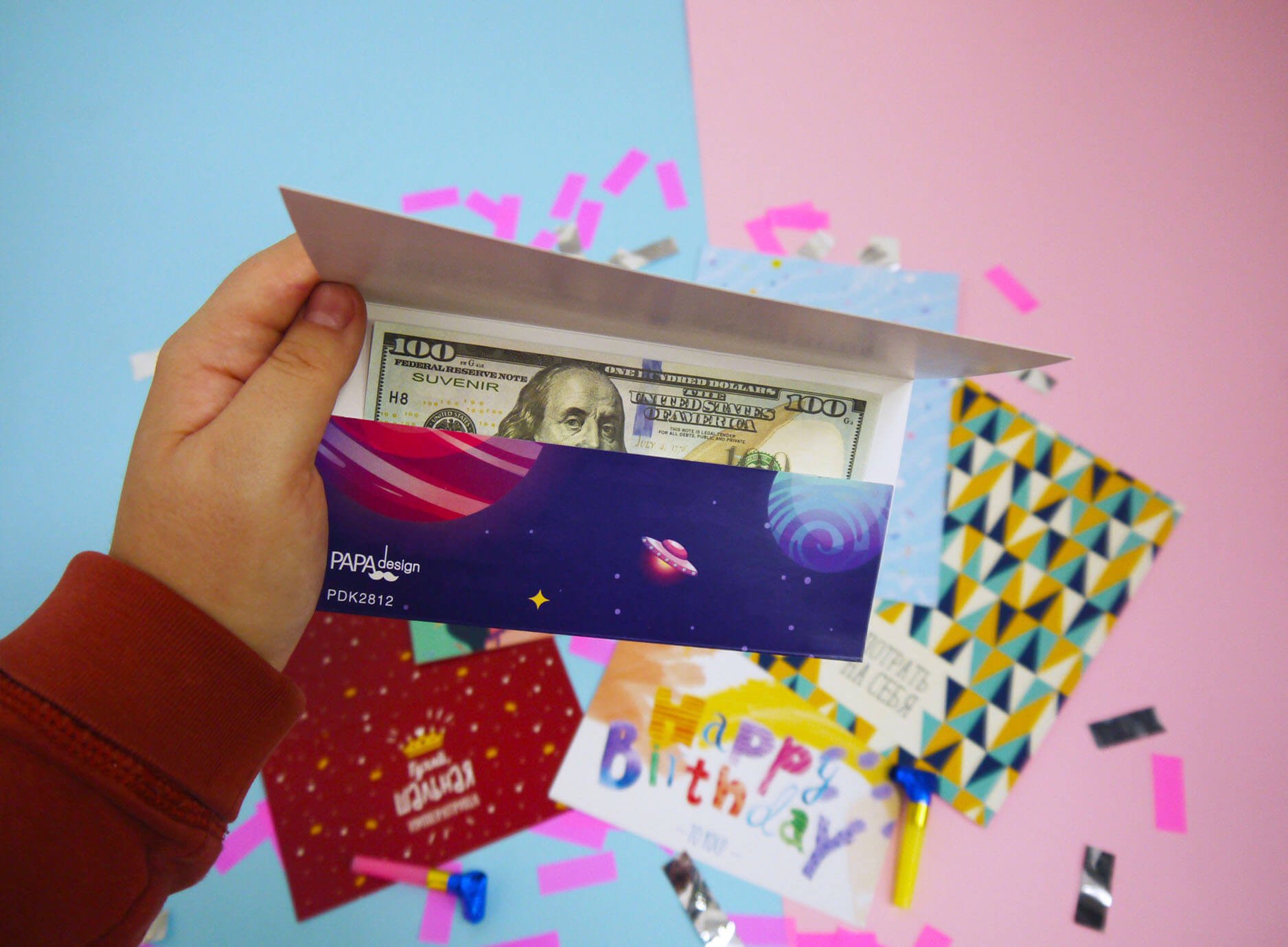 Навіть якщо ти не збирався дарувати гроші, радимо замовити собі десяток-другий листівок про всяк випадок. У PAPAdesign є листівки на будь-яке свято, а гроші, як не крути, залишаються одним з найбажаніших подарунків (зрозуміло, після подарунків з PAPAdesign).