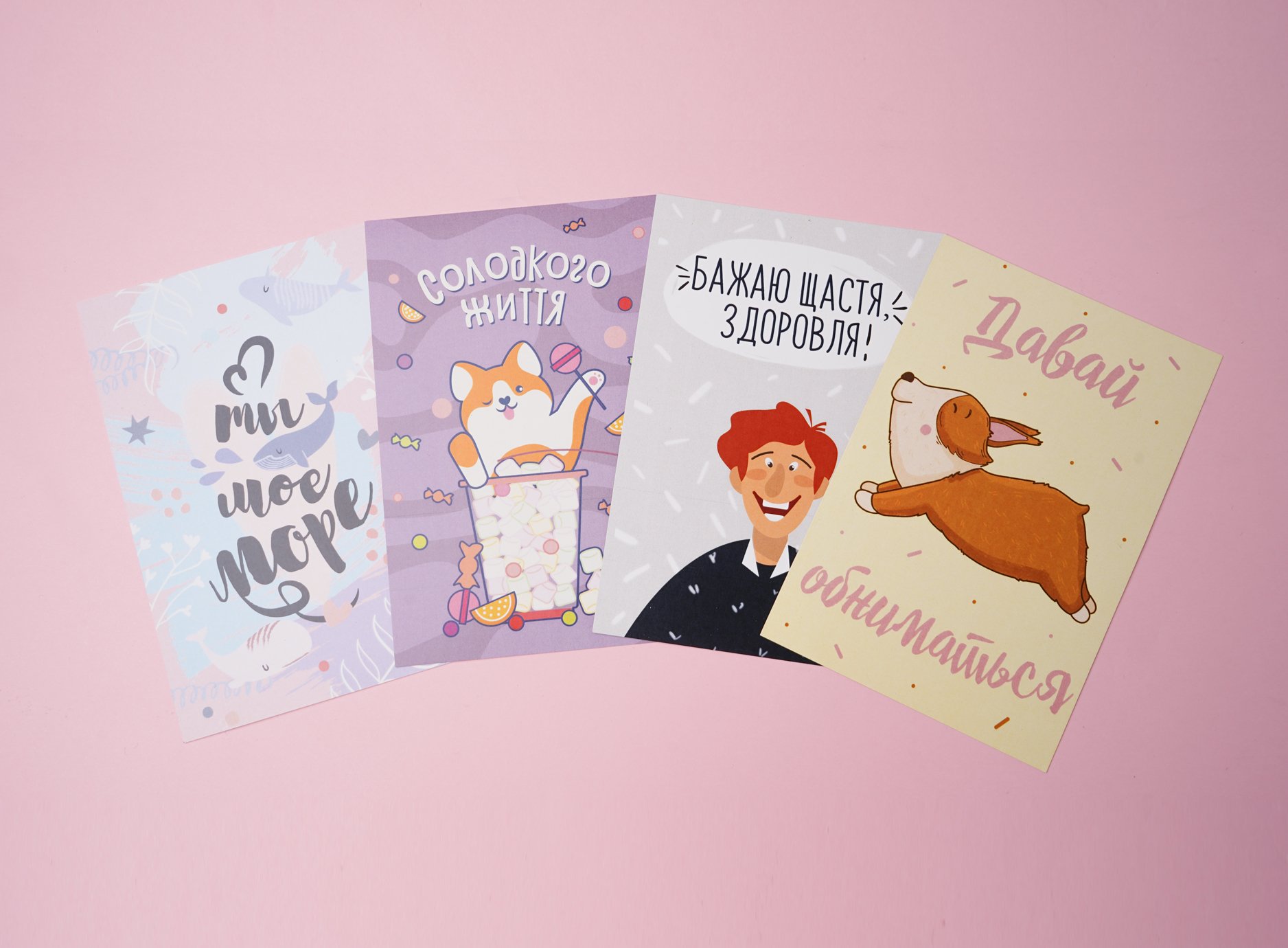 Визволи себе від зайвих слів і дивних поздоровлень: листівка все скаже за тебе. Ну, ти ж бачиш: без неї ніяк! Пора пожинати плоди нашого креативу і замовляти собі листівки за доступною ціною в кращих традиціях PAPAdesign. Оформлення миттєве, доставка оперативна. Вважай, що листівки вже у тебе: глянцеві, яскраві, привабливі.