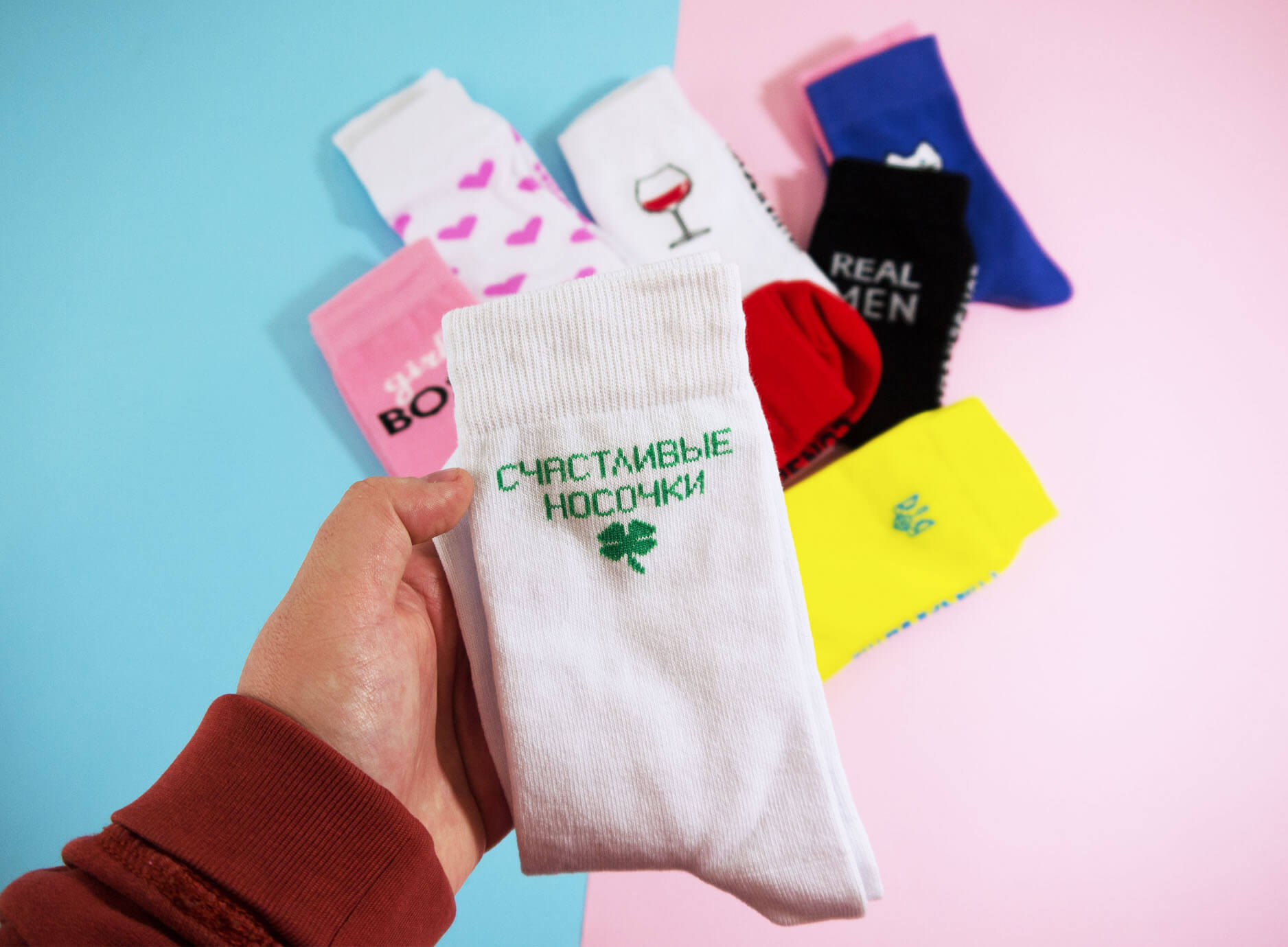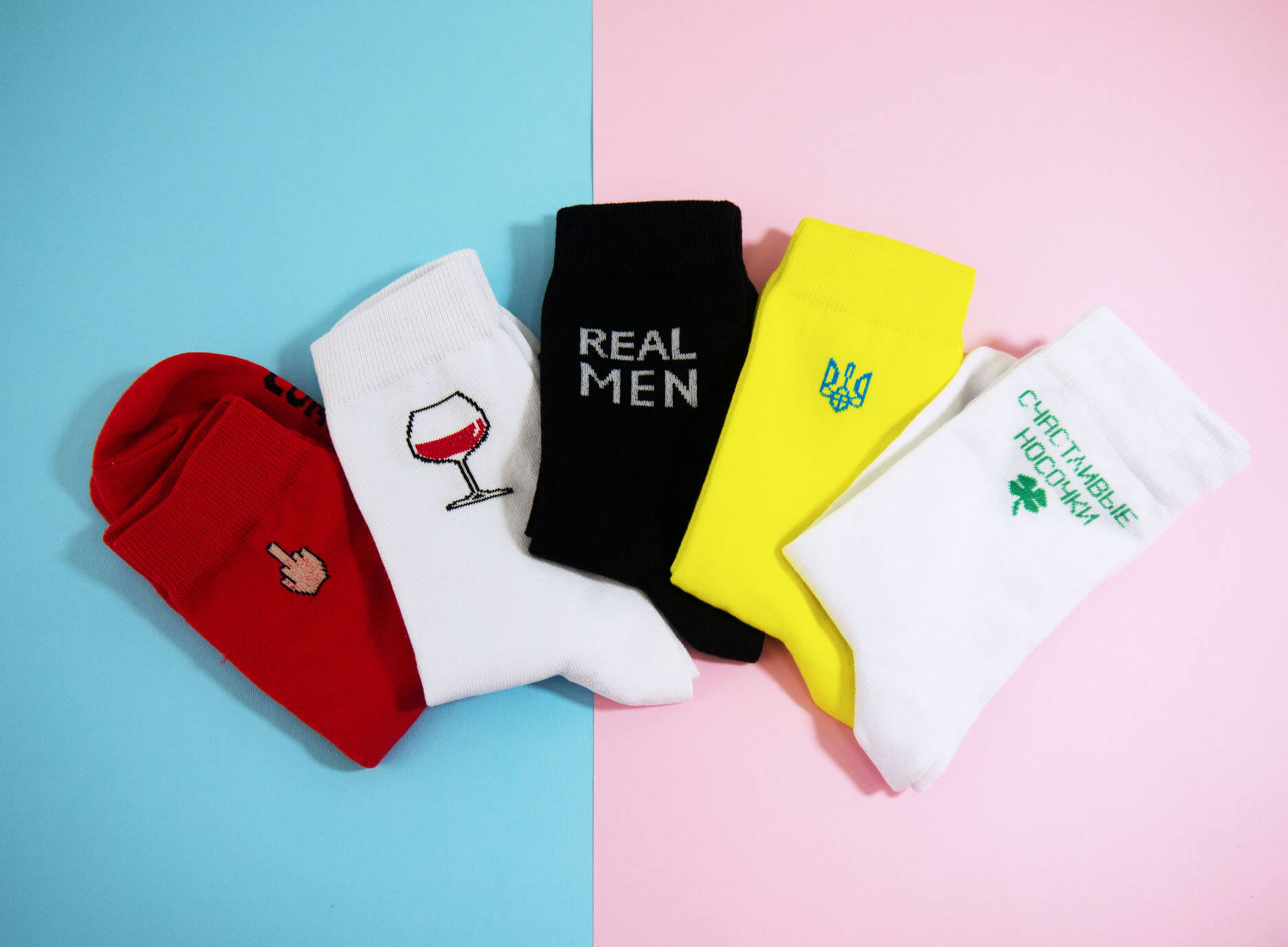 Милі і зухвалі, яскраві і лаконічні - немає меж фантазії коли мова заходить про шкарпетки. Втілюємо найсміливіші замовлення в життя. У вас є ідеї, як можуть виглядати найкрутіші шкарпетки в світі? Пишіть нам! Ідей немає, але дуже хочеться? Телефонуйте, ми допоможемо.